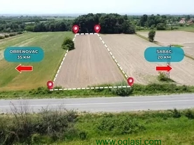 Odličan građevinski plac, površine 40 ari. Na samom magistralnom putu Šabac - Obrenovac - Beograd.